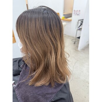 ダブルカラーは根本も明るくして2回目のカラーでグレーを入れるから、根本から明るいアッシュになるけど、ビフォーみたいにワンカラーだと明るい所にはアッシュは入るけど根本は入らないので、暗めのアッシュを入れグラデーションカラーみたいになります!