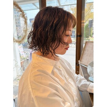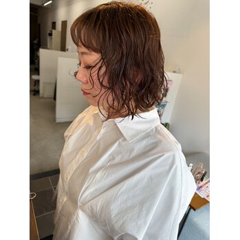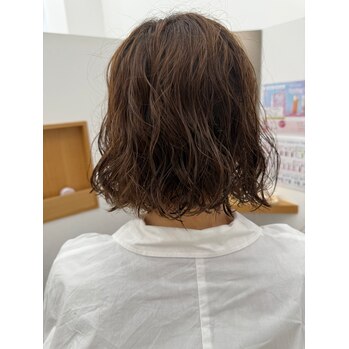 顔まわりにレイヤーを入れてその部分の毛先にしっかりパーマ!