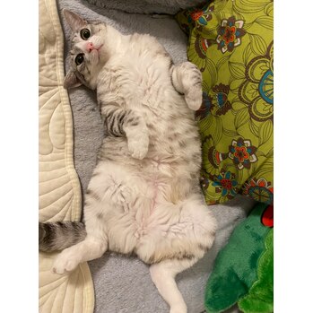 写真撮ってたら起きたの図。仰向けで寝ることも多々あるヌッコです。